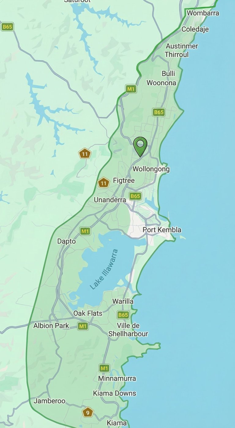 We proudly cover the coastal stretch from Kiama to Wombara, plus nearby neighborhoods.